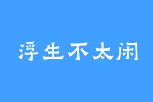 浮生不太闲